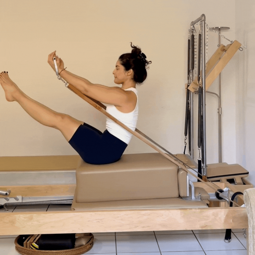 Q: What's the difference between practicing the pilate teaser on the mat versus the reformer? A: The mat version requires complete independent control, while the reformer provides spring assistance that can help with learning proper form and building strength gradually. At the same time, the tension can elicit a different stimulus in the body which can increase difficulty.